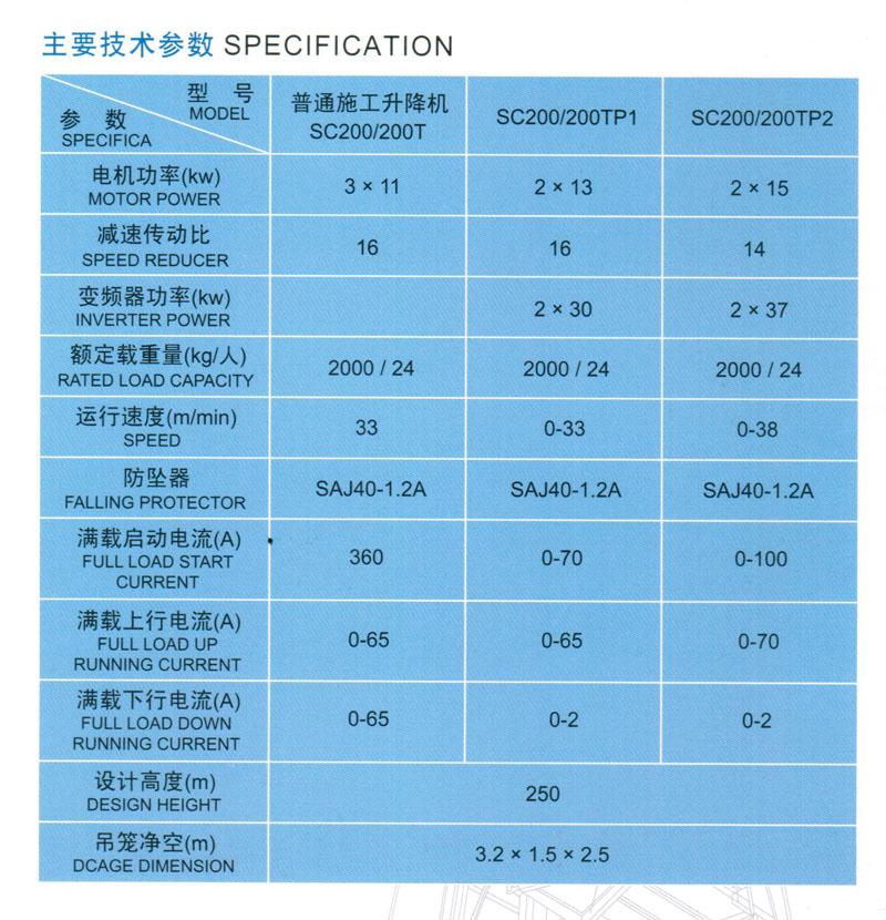 變頻施工升降機(jī)主要技術(shù)參數(shù):